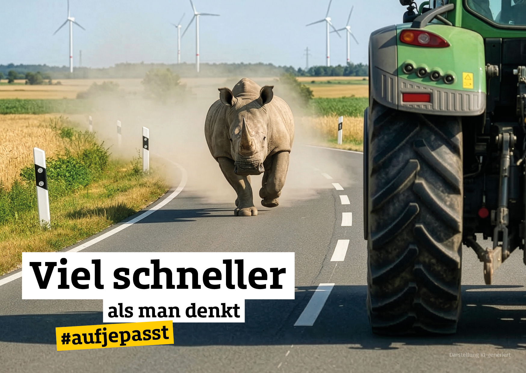 Auf Landstraßen täuschen Geschwindigkeiten oft. Beim Überholen von langsameren Verkehrsteilnehmenden – ob Auto, Traktor, Bus oder LKW – wird die Dauer des Manövers häufig unterschätzt.